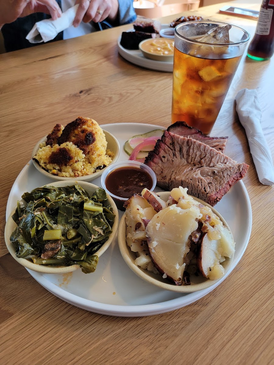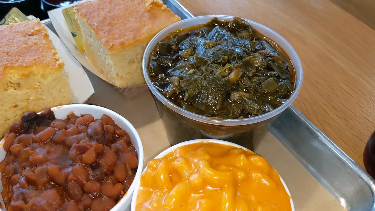 Macaroni and Cheese Collard Greens Corn Bread Pickled Onions and Pickles